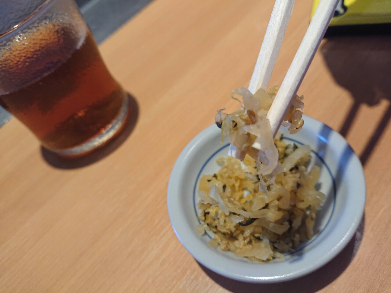 しかもやよい軒のやつぁ ご丁寧にも氷まで浮かべてやがる。
