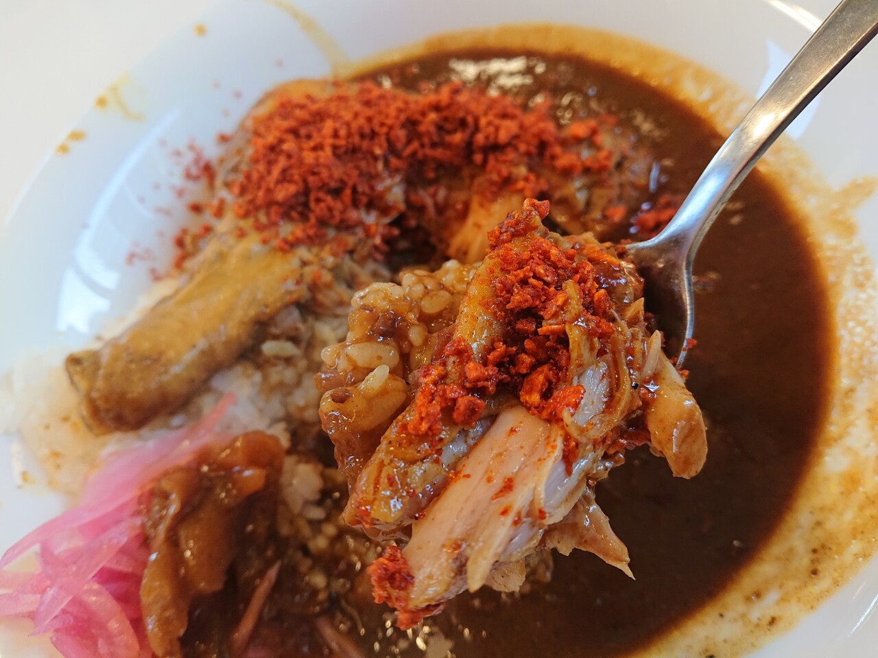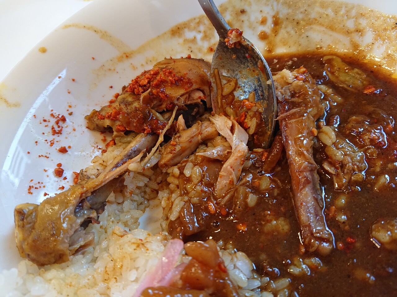 金属スプーンとほろほろチキン。