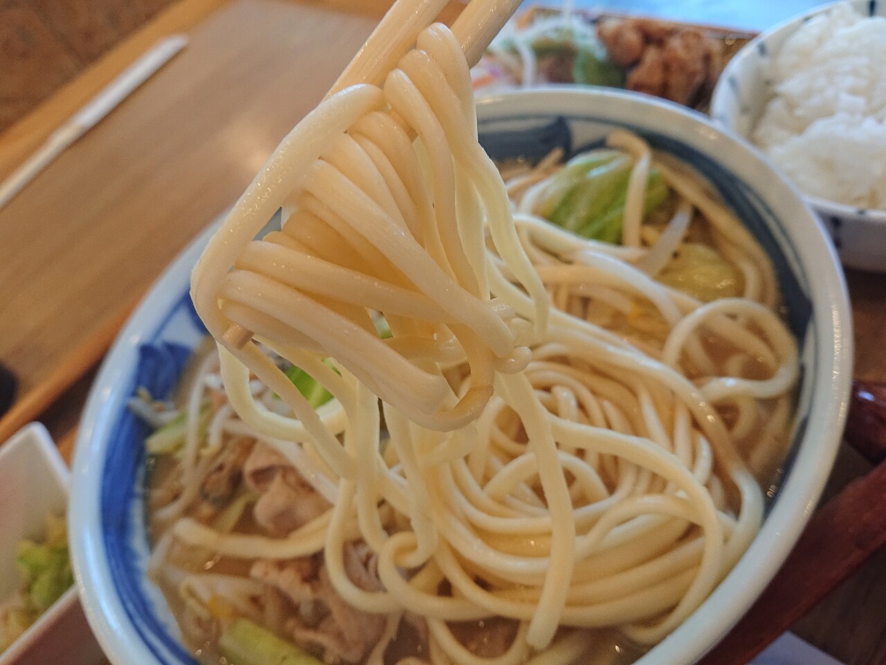 ちゃんぽんにあって弱平麺。