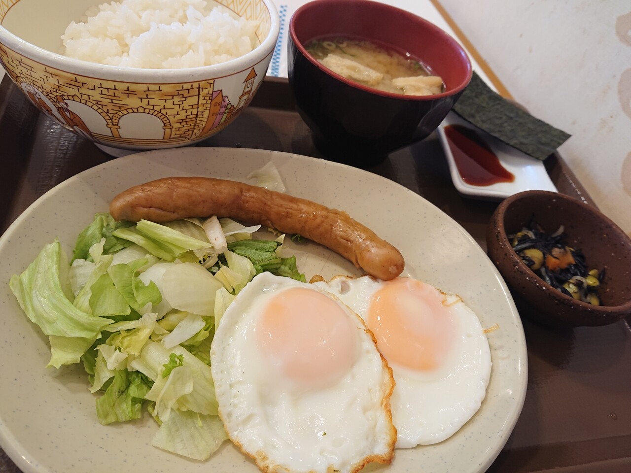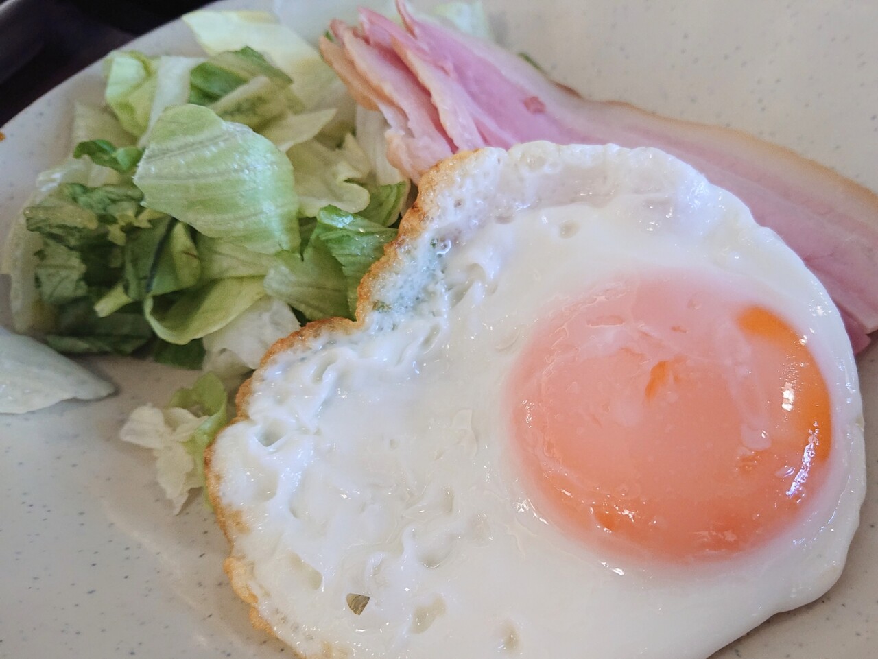 ベーコンエッグ朝食が増量中なのに