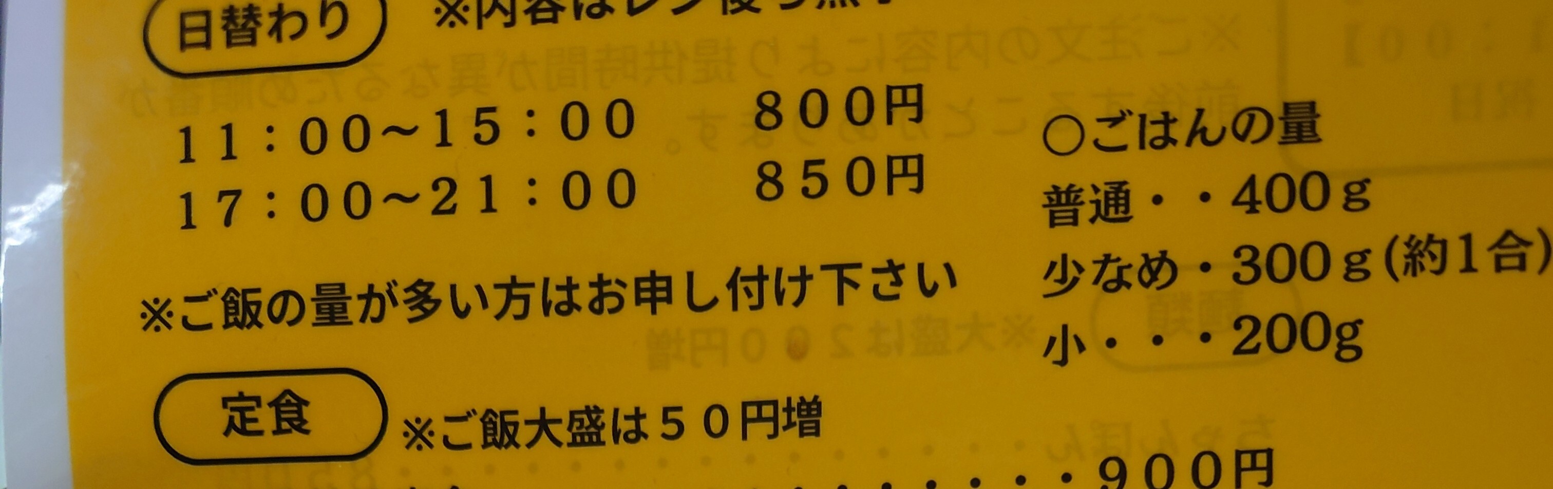 そんで 日替わりは800円よ。