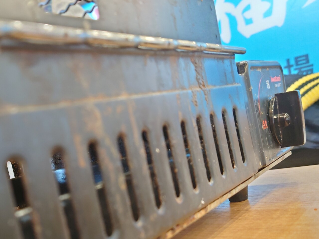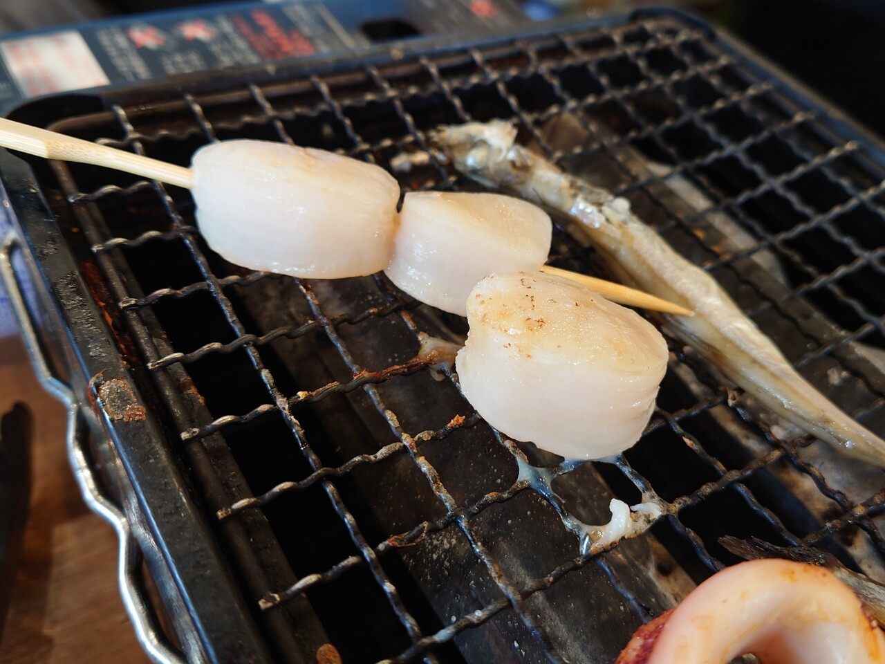 目ん前に網焼きコンロやら置いとんなーったい。