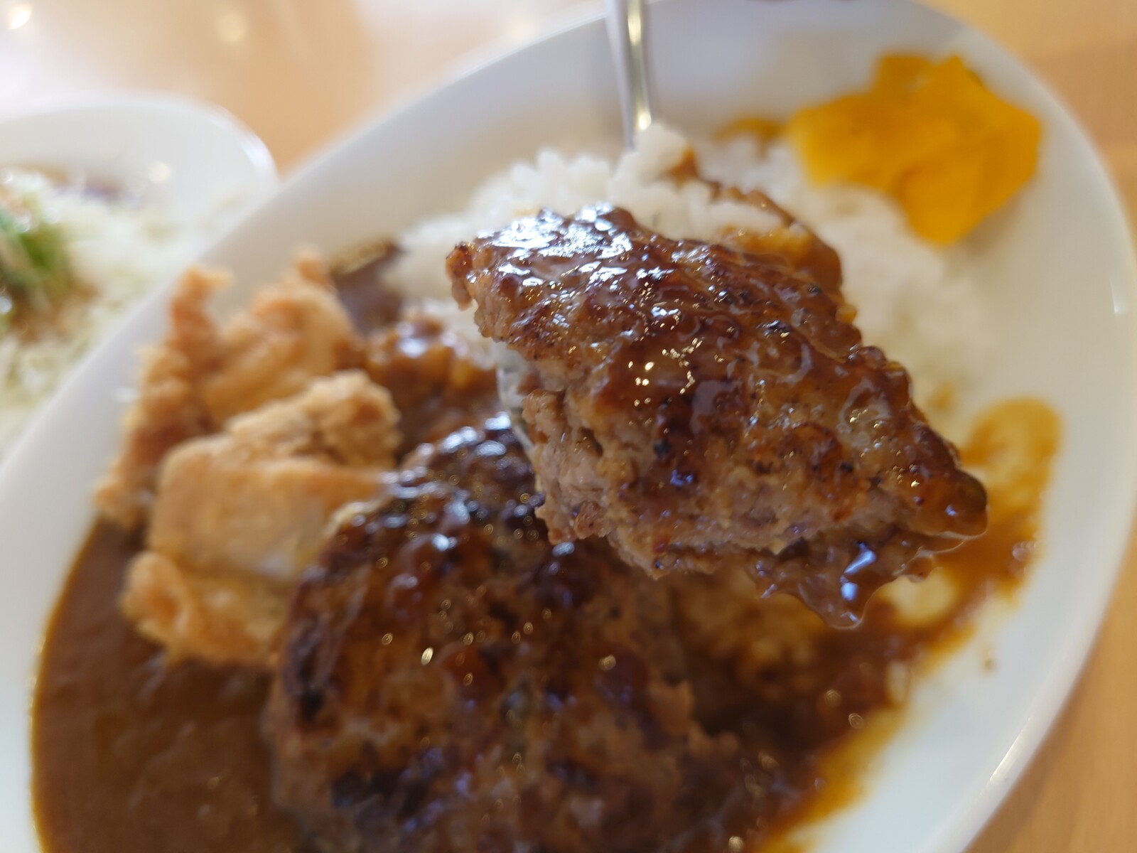 ハンバーグ&唐揚げカレーだ!大盛だ!