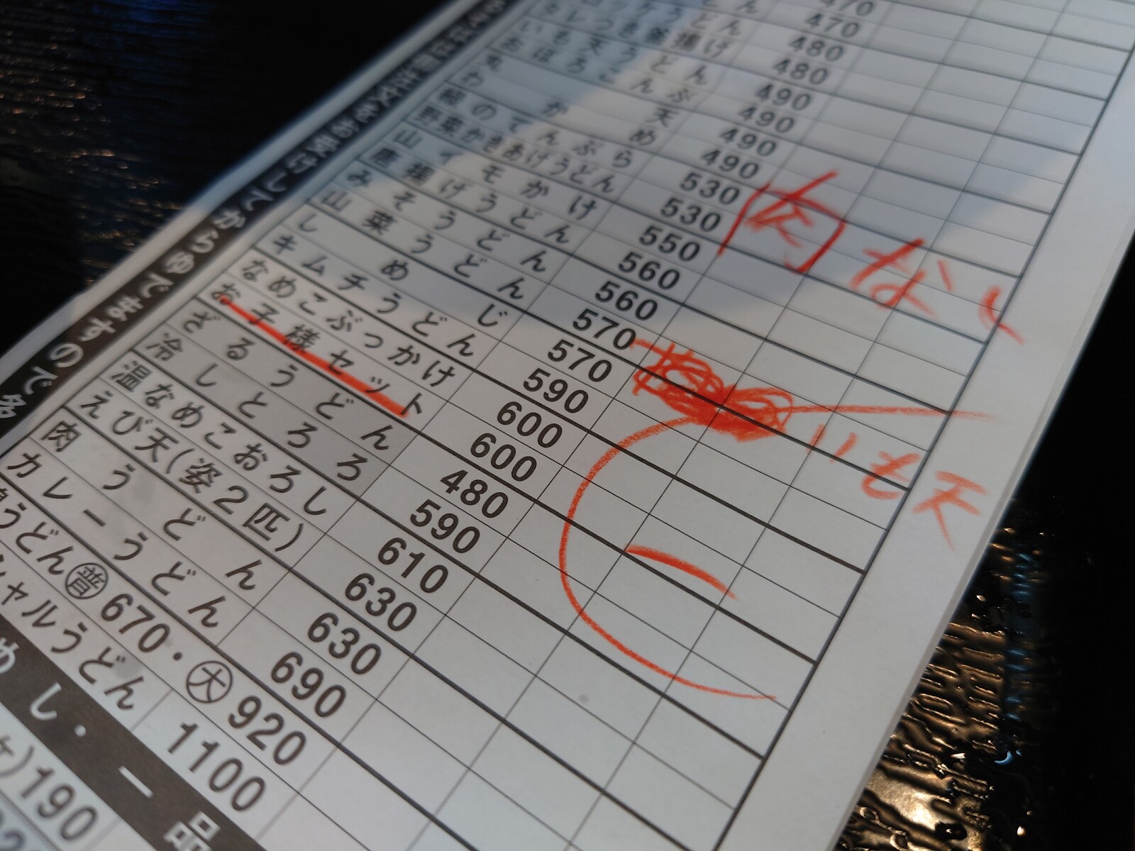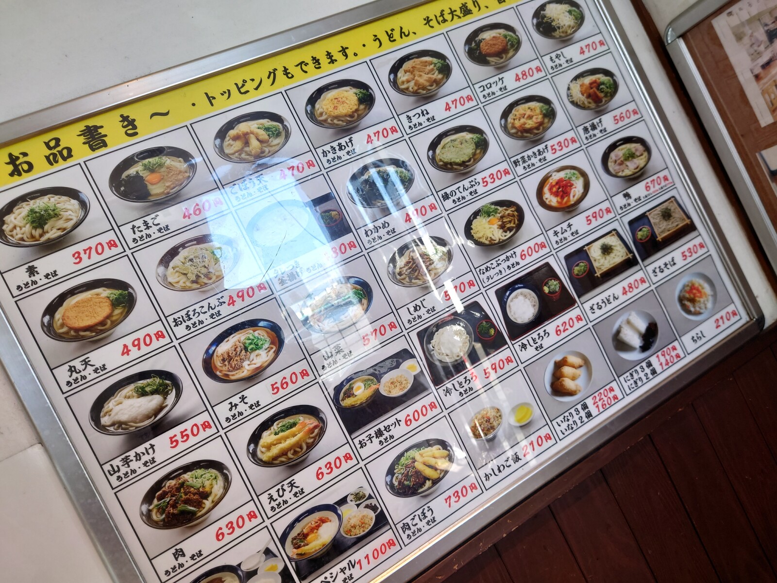 牧のうどんのメニューに