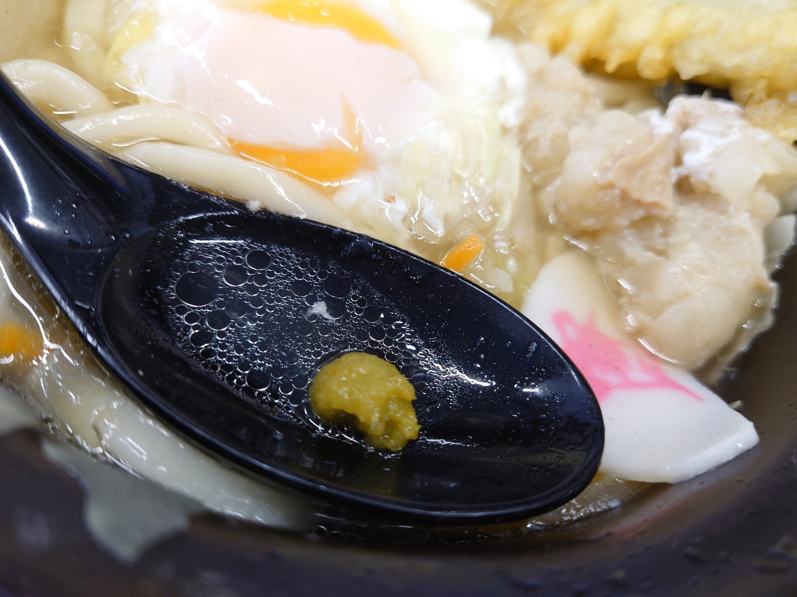 このうどんの100℃汁でのセルフみそ玉。