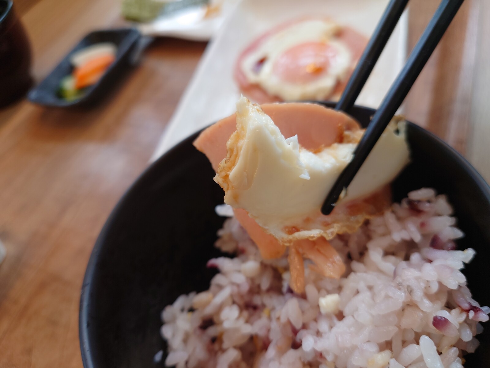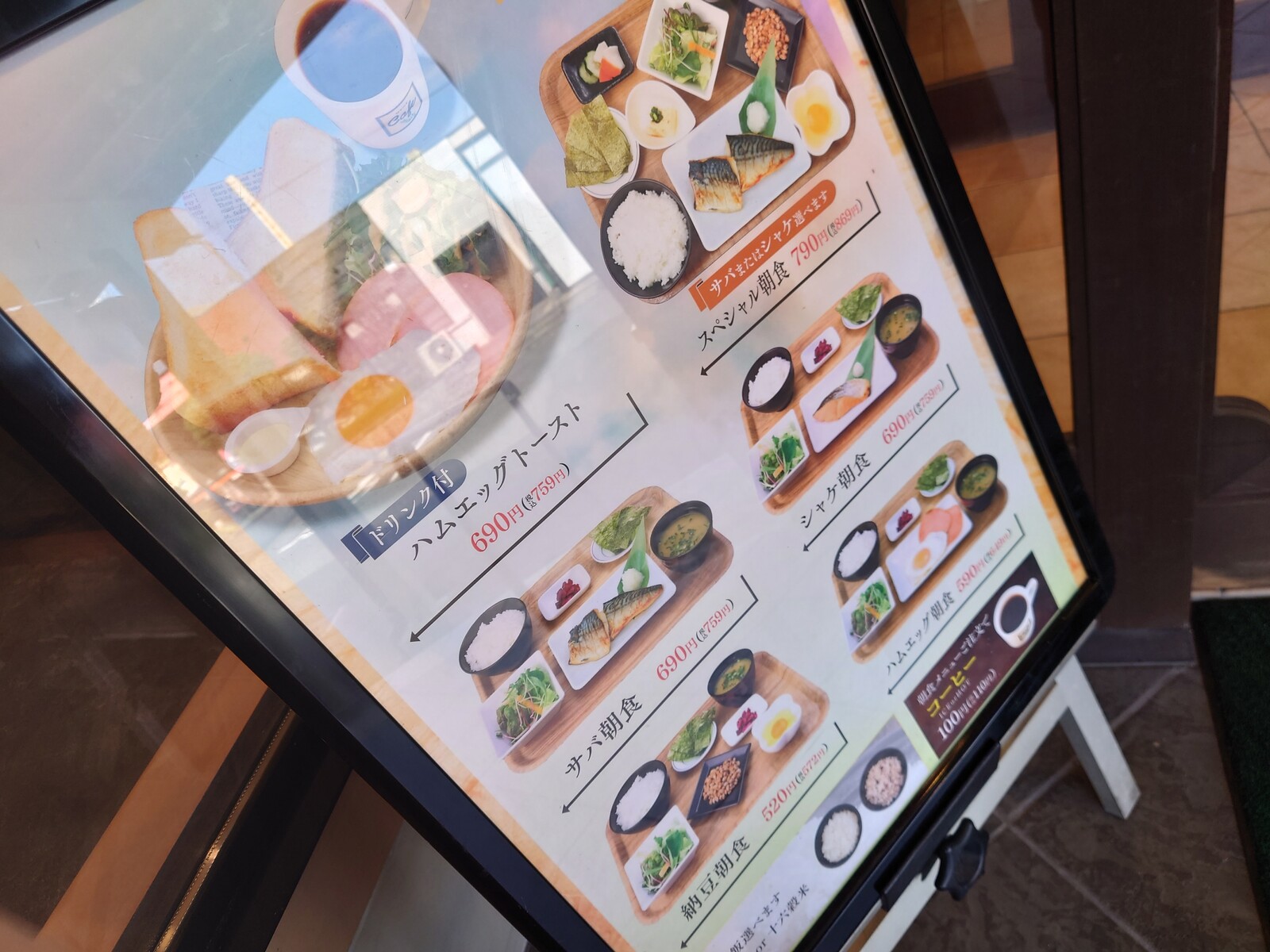 ハムエッグ朝食 649円。