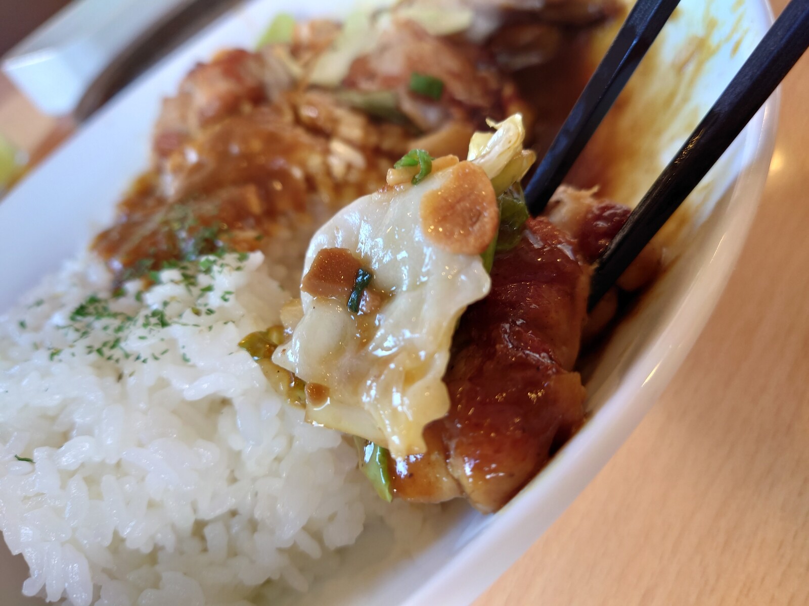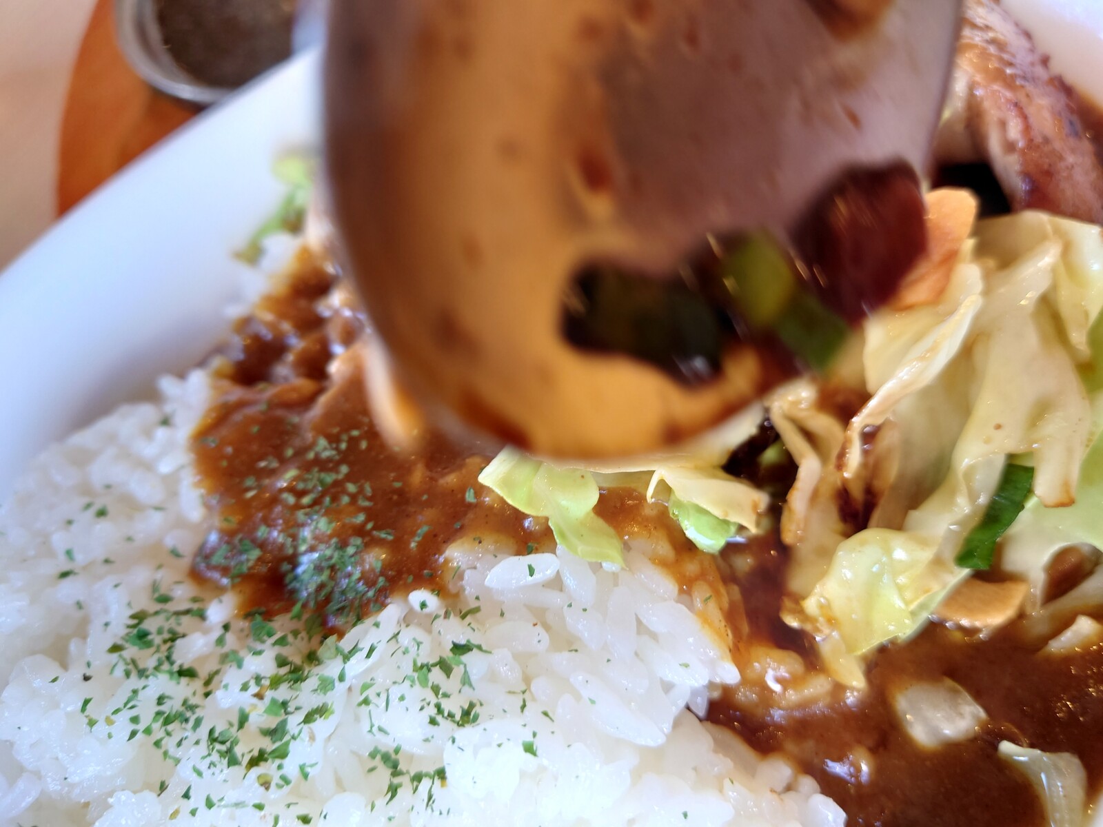 そのカレーを纏うチキンもキャベツもうまうまですわ。