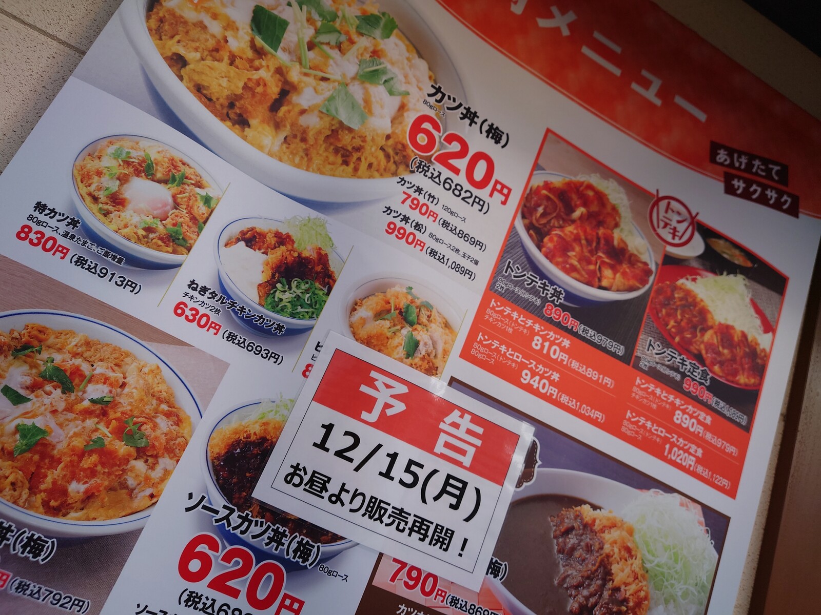 カツ丼(竹)790円 → 590円